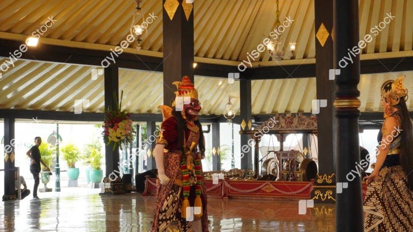 Yogyakarta, Indonesia, March 03, 2023 : human puppet arts, Serimpi dance and Bedoyo dance, traditional Central Javanese dances at the Jogjakarta place,